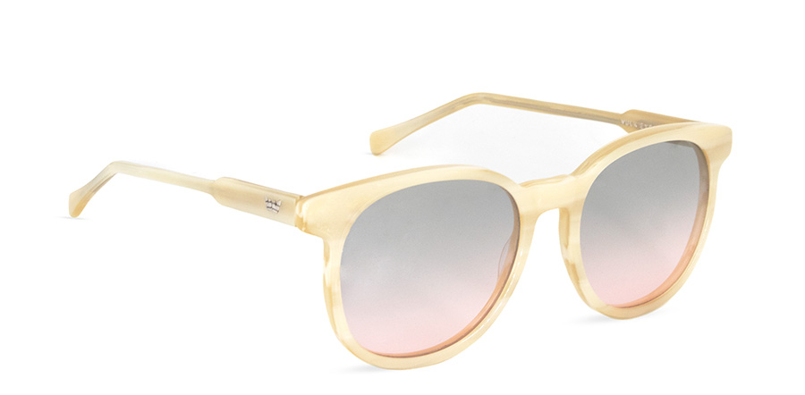 El frente está fabricado en acetato biodegradable, acompañado de patillas del mismo material con bisagras de acero inoxidable para mayor resistencia y confort.