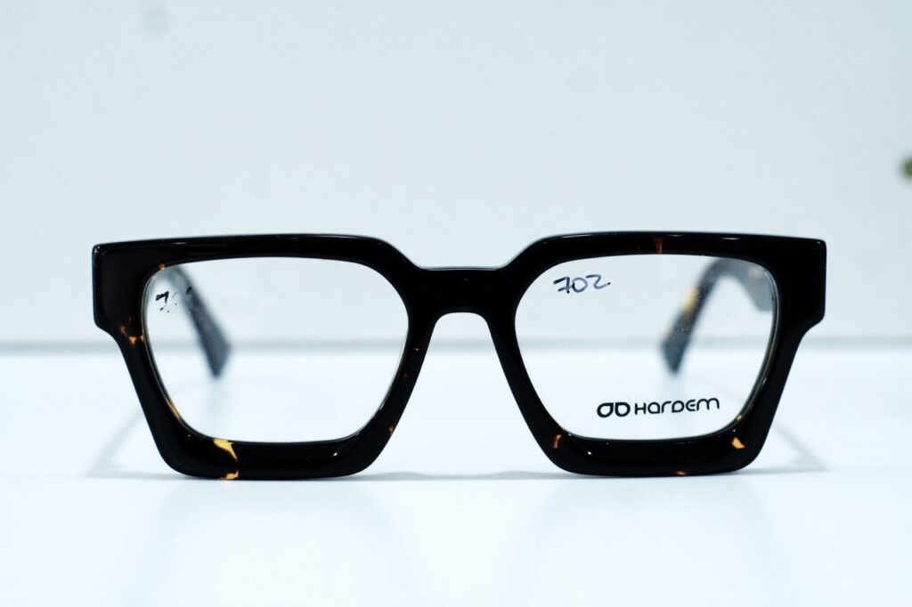 Este modelo está fabricado íntegramente en acetato de alta densidad, con un frente de forma cuadrada bien marcada, ideal para quienes buscan un marco con carácter y definición.