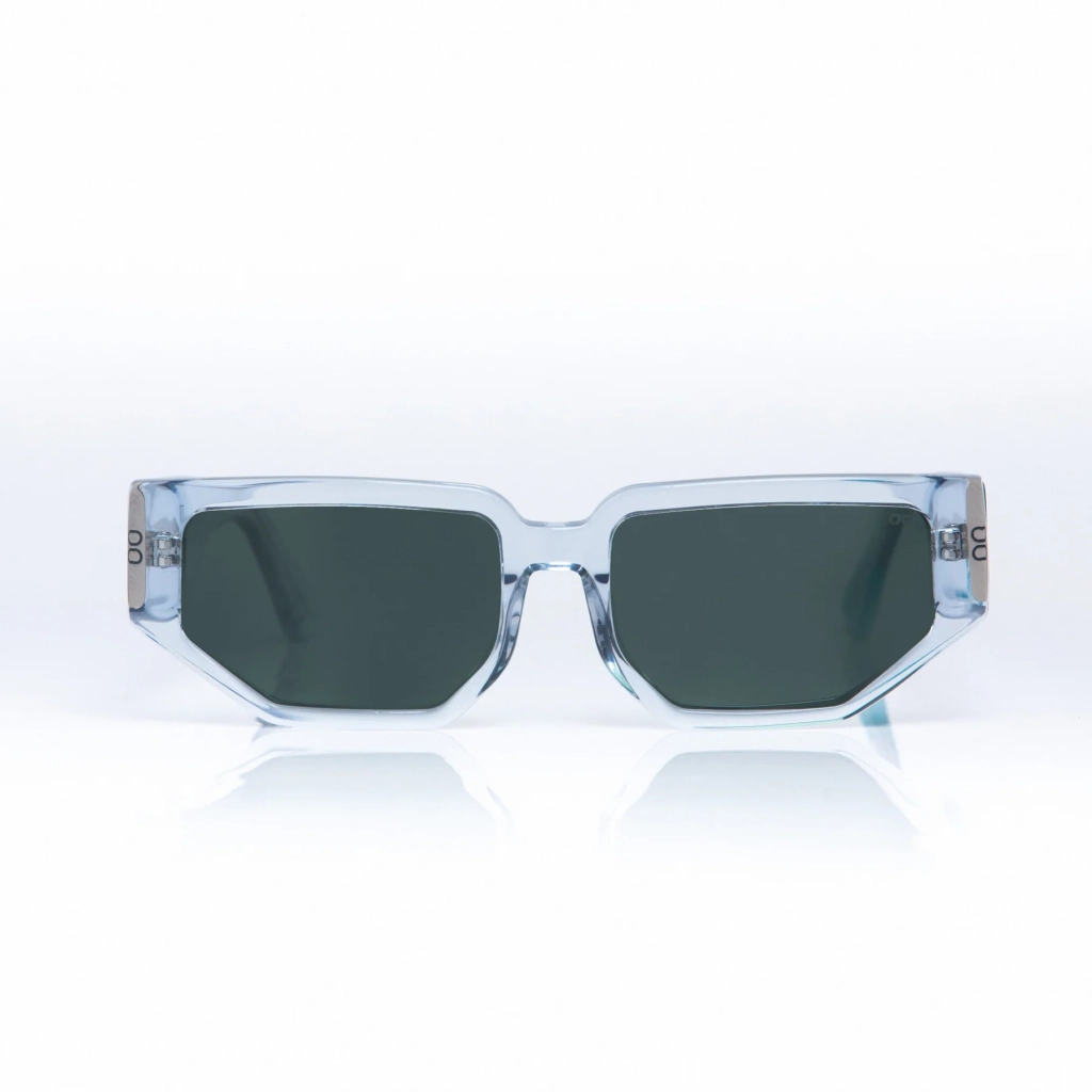 Edición limitada diseñada junto a Tranca. Armazón de acetato celeste translúcido brillo con lentes verdes G-15 polarizados y protección UV400.