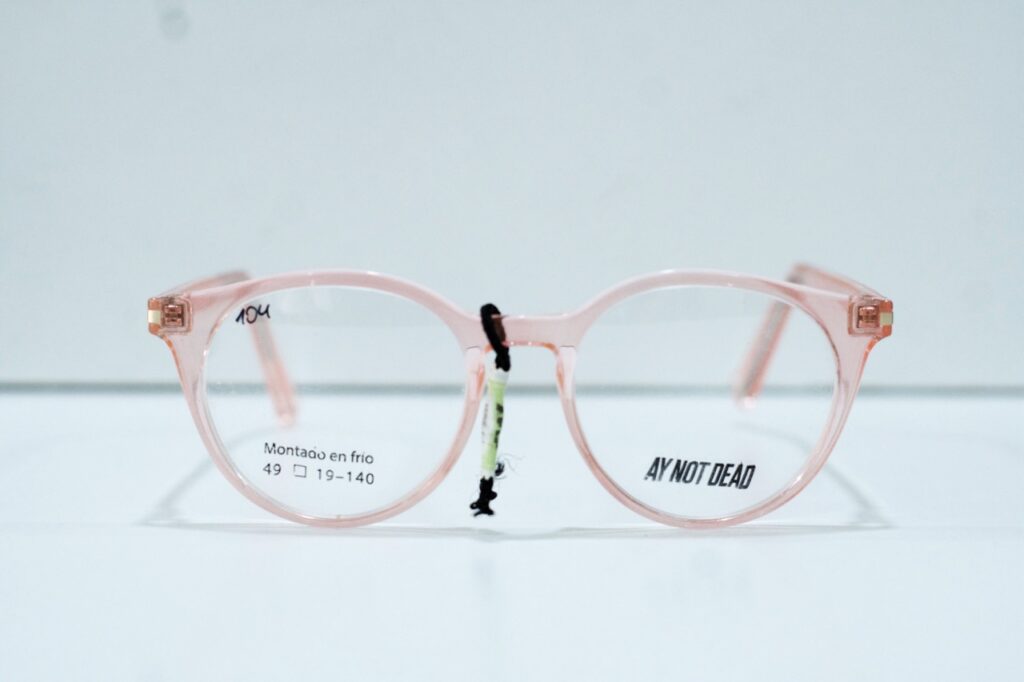 Lentes redondeados TR-90 rosa transparente.