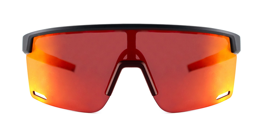 Gafas deportivas ultralivianas en G-Flex con sistema Air Ventilation. Lentes espejados Revo Red en policarbonato, con 100% protección UVA y UVB. Peso: 20 g.