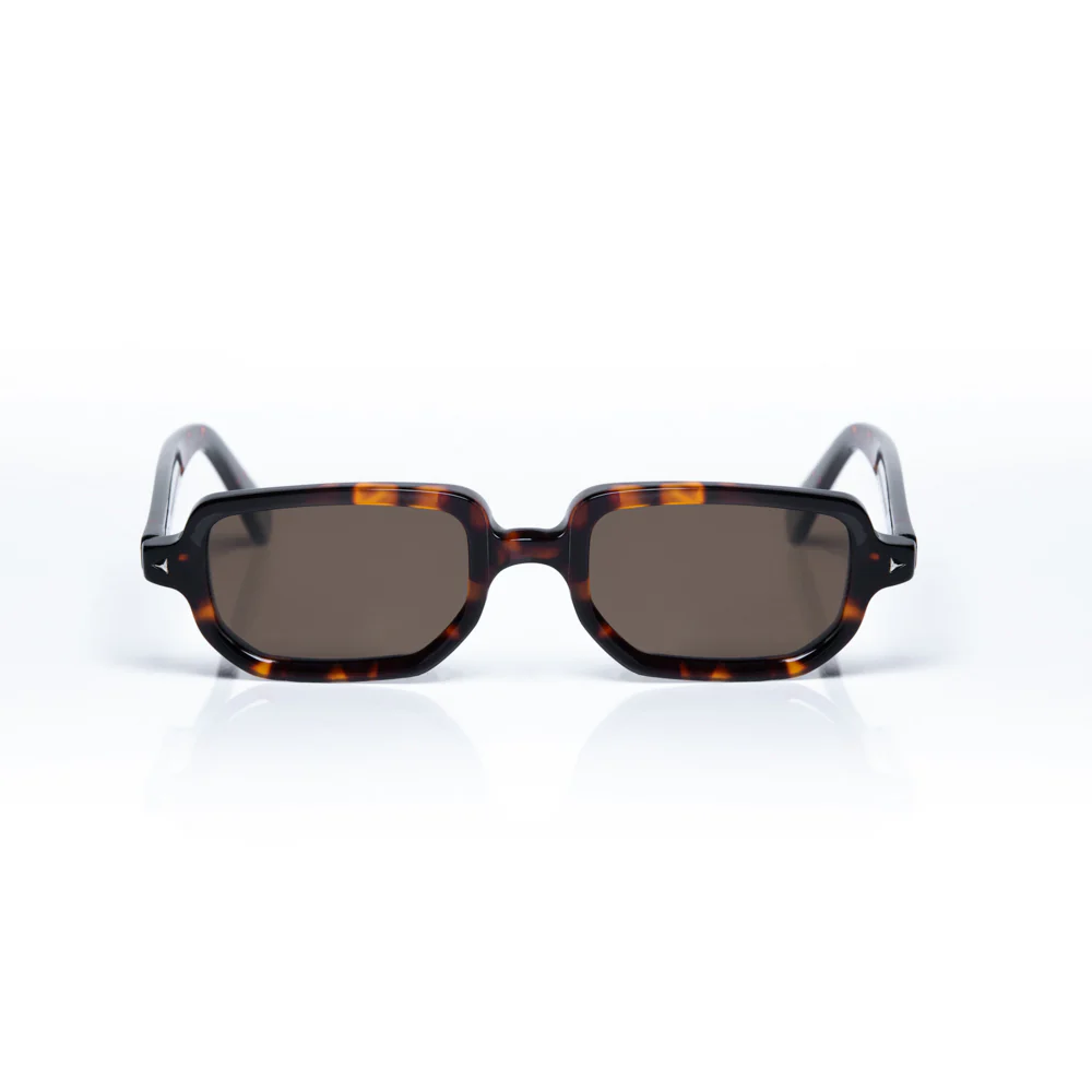 Lentes de sol fabricados en acetato con frente y patillas carey brillo. Cristal sepia con protección UV 400 y polarizado. Modelo genderless & ageless.